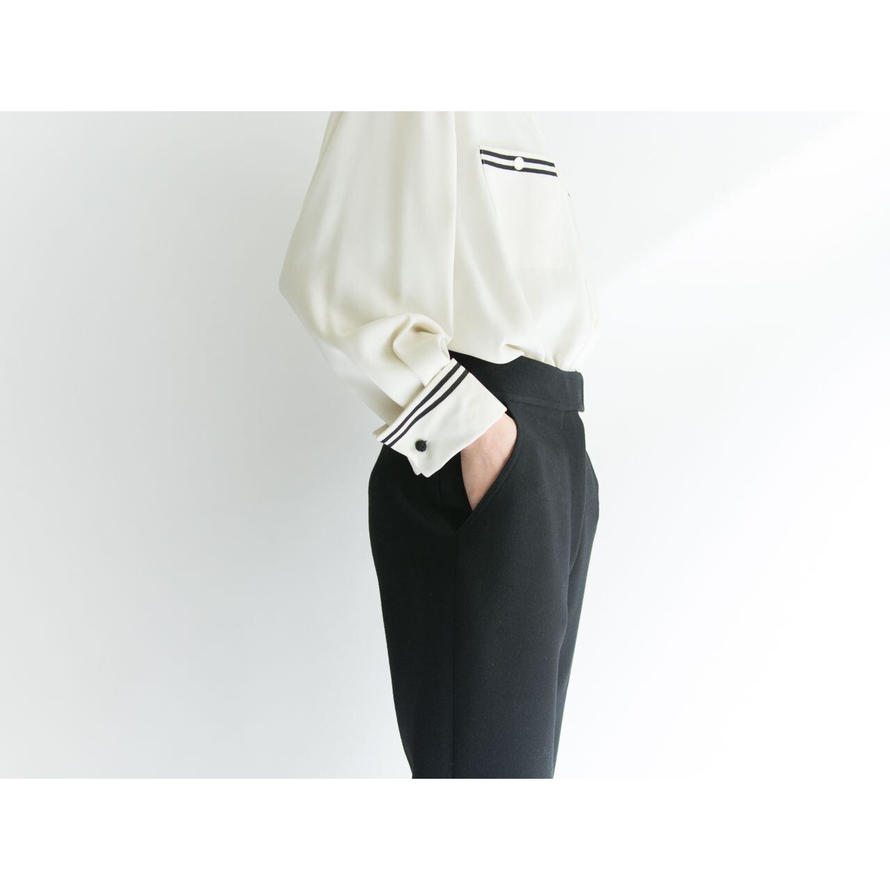 厚みのあるウール素材のハイウエストトラウザーズ。