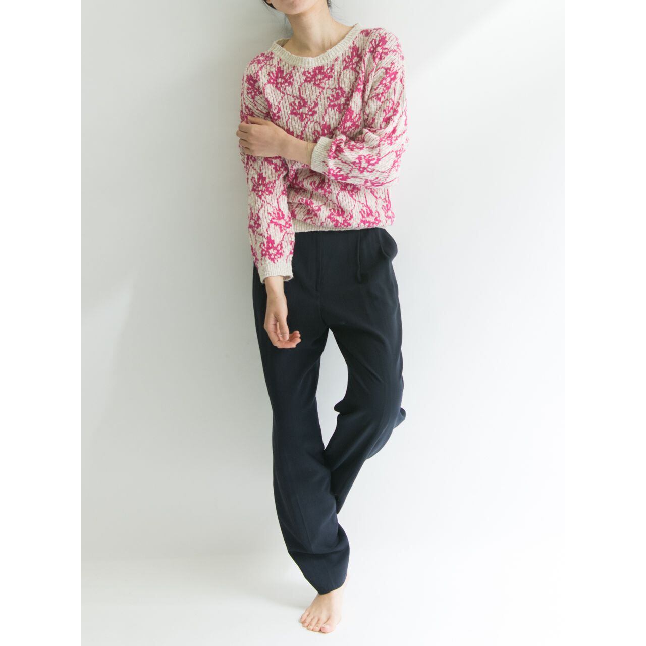 ニュアンスのある色合いと細かな糸からなされる上品な柄が魅力的なニットプルオーバー。